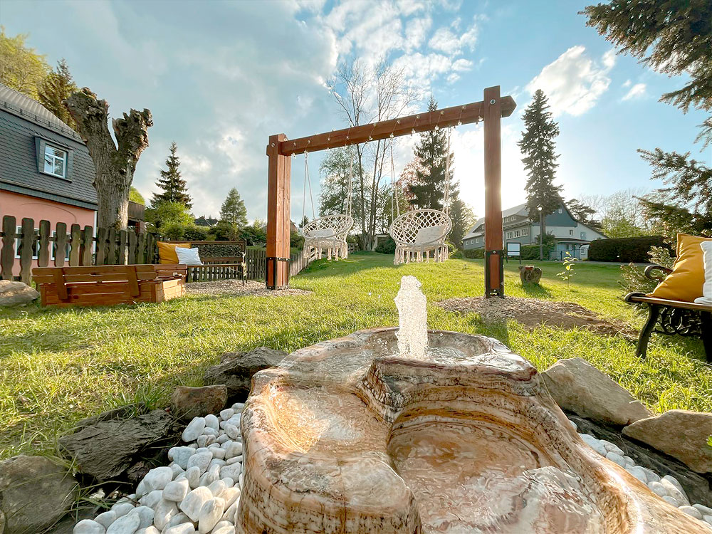 Wenn Sie bei uns zu Gast sind, schlafen Sie vielleicht nicht wie im Paradies, aber direkt daneben. Denn wo sich auch Fuchs und Hase gute Nacht sagen, ist es himmlisch still. Fernab von Straßenlärm und Alltagshektik bietet unser Gasthaus am Randes des Dörfchens Hain und direkt am Wald die idealen Voraussetzungen, um mal so richtig zur Ruhe zu kommen. Übrigens sind bei uns auch Haustiere herzlich willkommen.