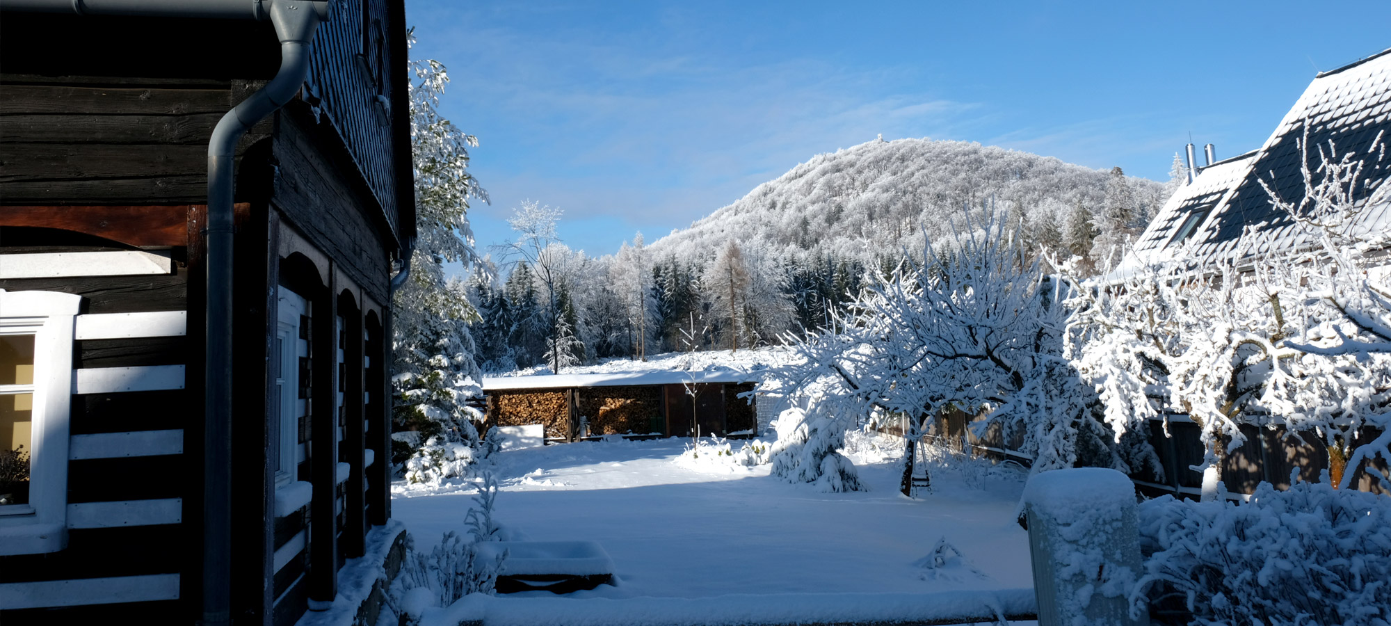 Auf unserer für Urlaubsgäste reservierte Sonnenterrasse können Sie sich der wohltuenden Natur des Gebirges erfreuen. Und je nach Temperatur und Vorliebe dabei ein kühlendes oder wärmendes Getränk genießen.